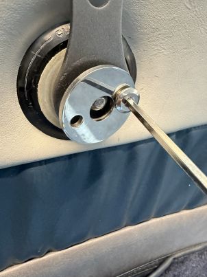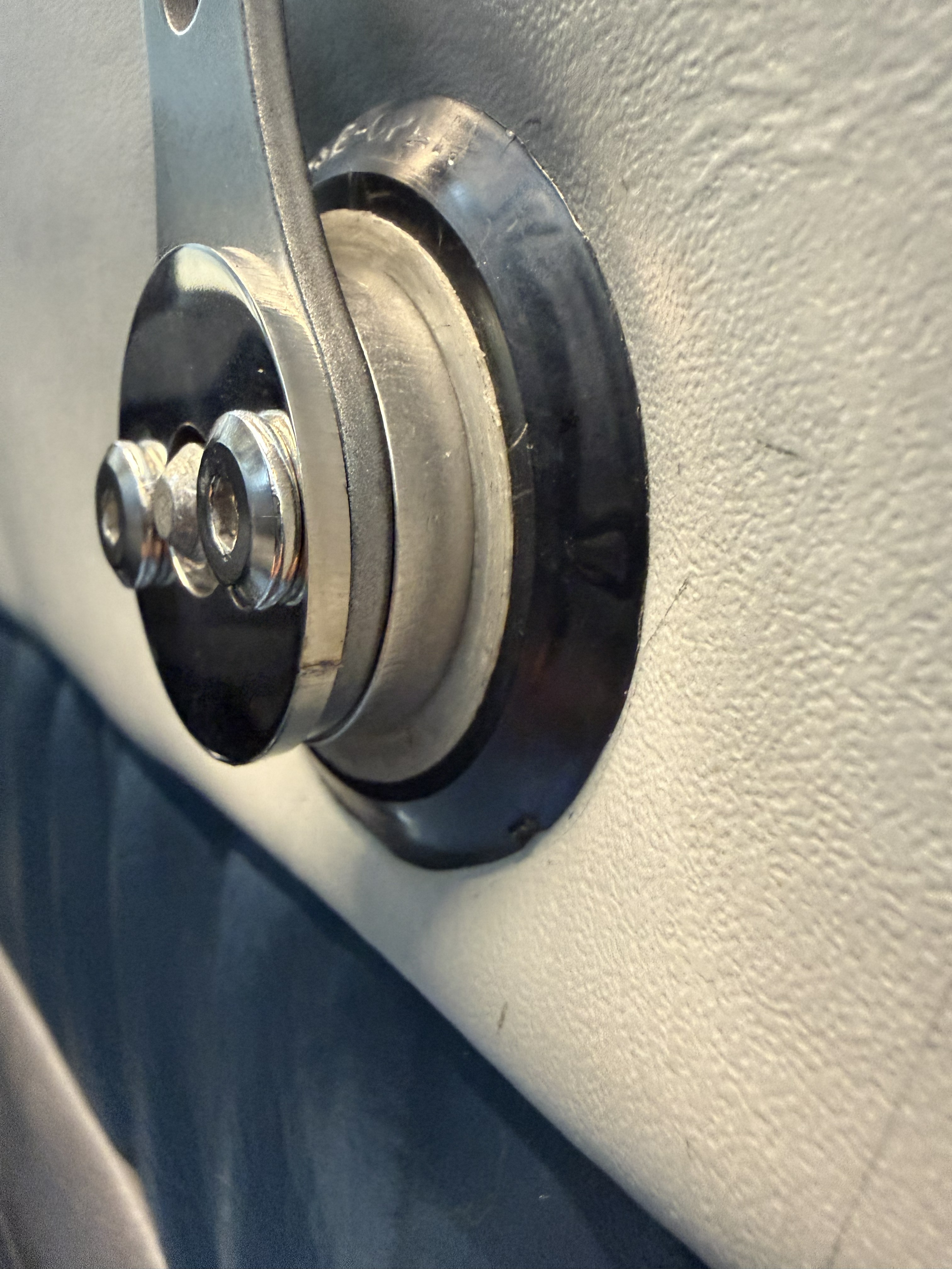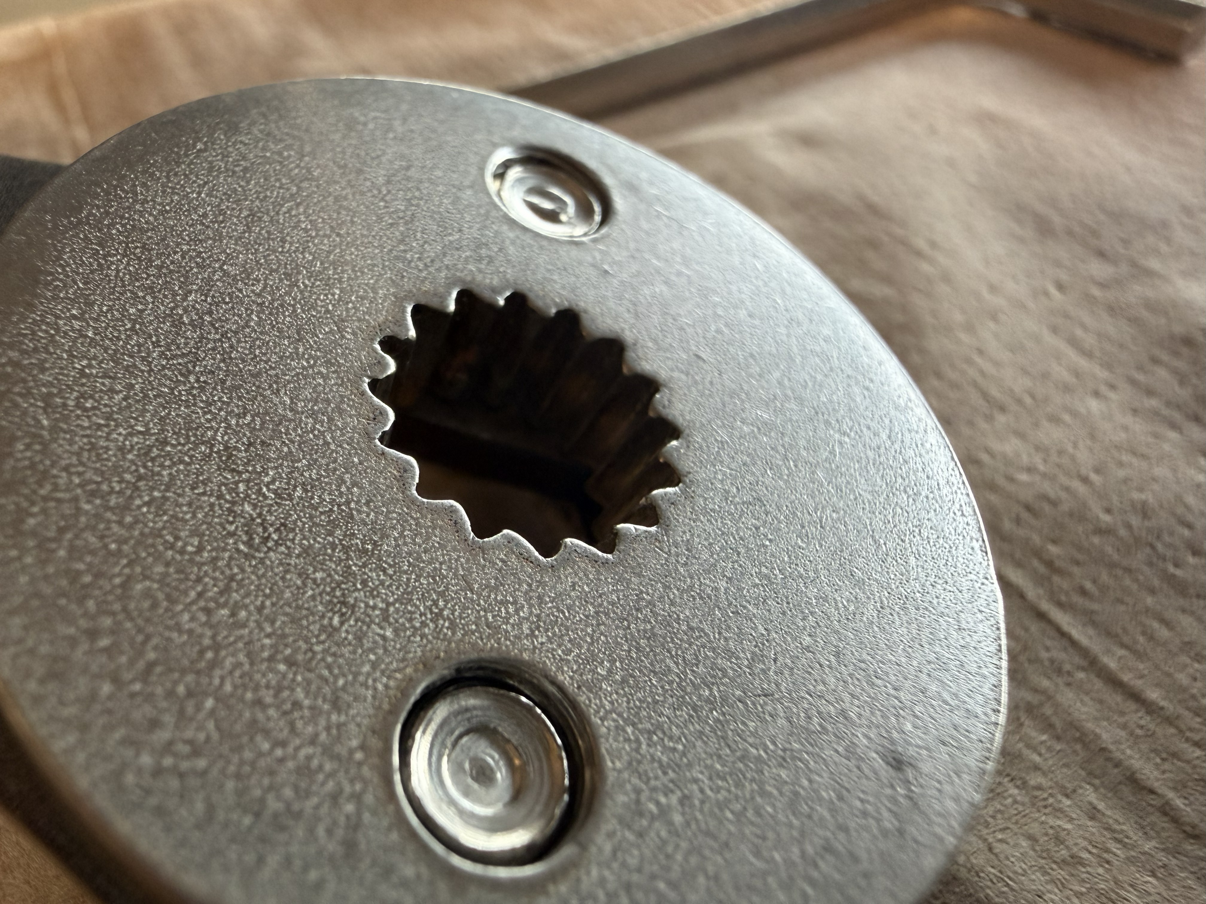 Here's a close up view of the back of the Spline with the bolts fully tightened. You can see that they do not extend beyond the back of the Spline and so won't wear grooves in your washer or placard.