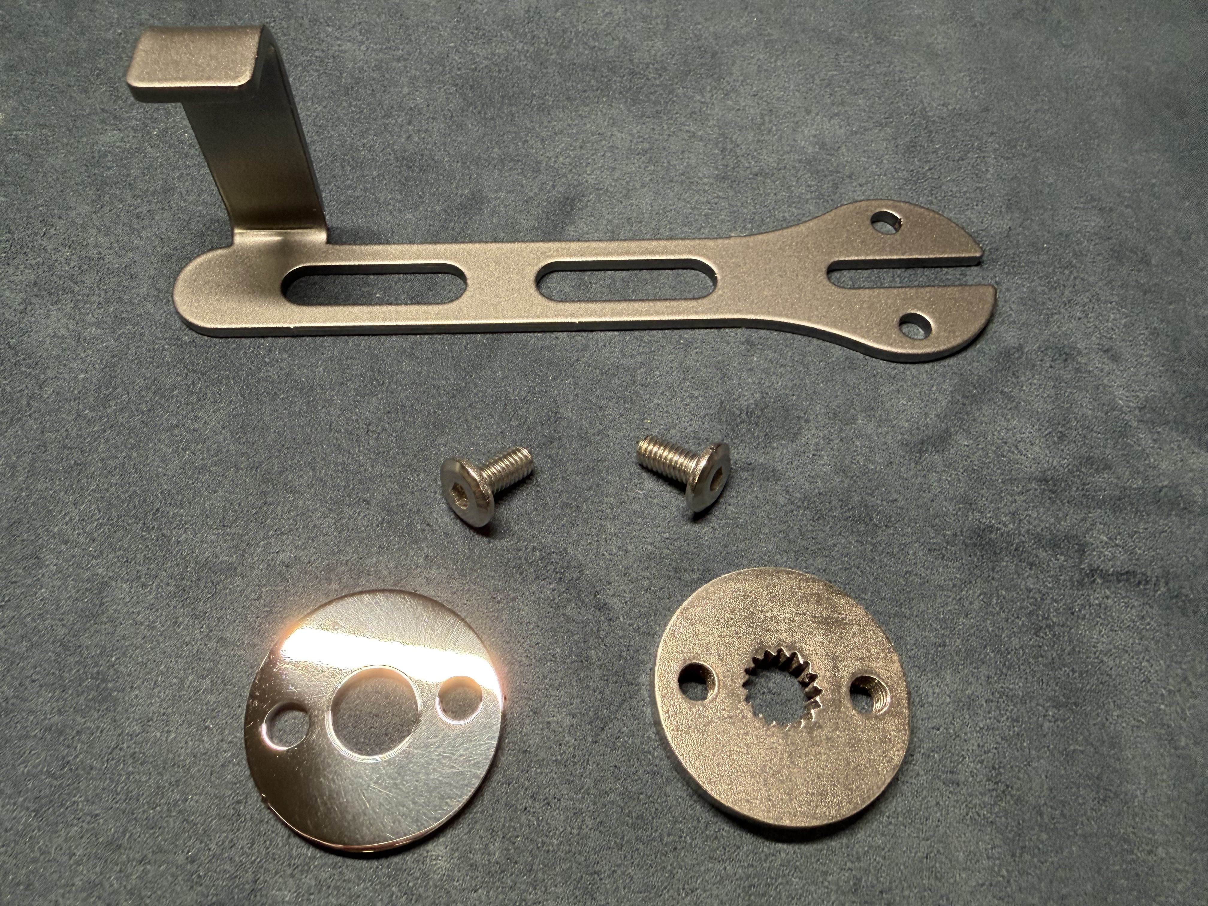 E.) It's custom-orderable. By default the Handles are powder coated in metallic grey and the Covers are polished on one side. If you would like the Handles powder coated in a different color, that's available but it will entail a slight shipping delay and a modest upcharge. Alternate colors available are: Semi-Gloss Textured Black, Gloss Black, Matte Black, Wrinkle Black, Gloss Grey, Gloss White, Gloss Blue, Gloss Green, Gloss Red, and Gloss Yellow. If you want a color not listed here - or bare stainless - please contact me. Similarly if you want the Cover done in some other finish than polished, please contact me. I will be investigating a brushed look but those are not yet available. If you think that would be better than polished, again, please let me know and I'll pursue it more diligently.