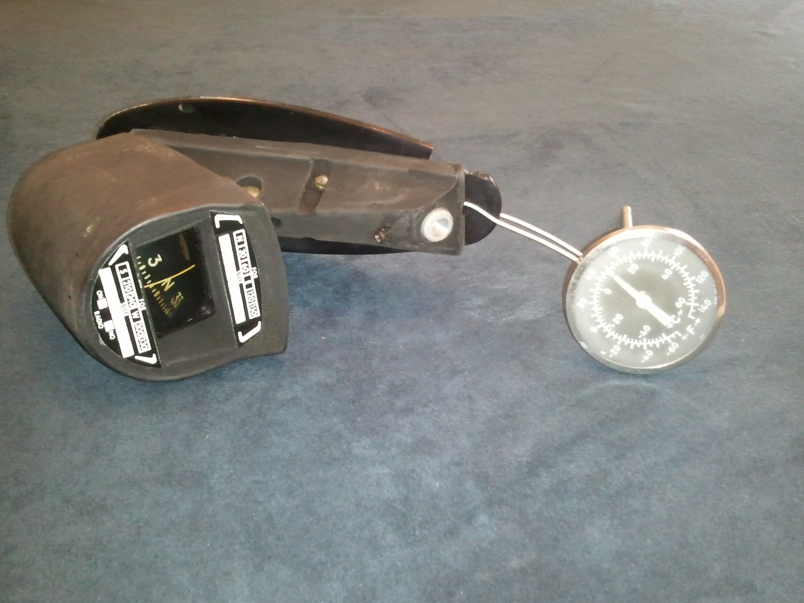 Whiskey compass and temperature probe. Used. Compass is not leaking and the temperature probe reacts to skin contact so, as far as I know, these are working fine. They were removed when I had my windshield replaced. The base of the compass is cracked with a piece missing and the remaining glue is pretty rough. Price: make offer.